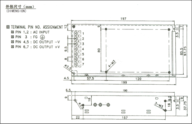 注:1、以上參數(shù)測(cè)試條件為:230VAC輸入,額定負(fù)載,25℃ 70% RH.濕度。