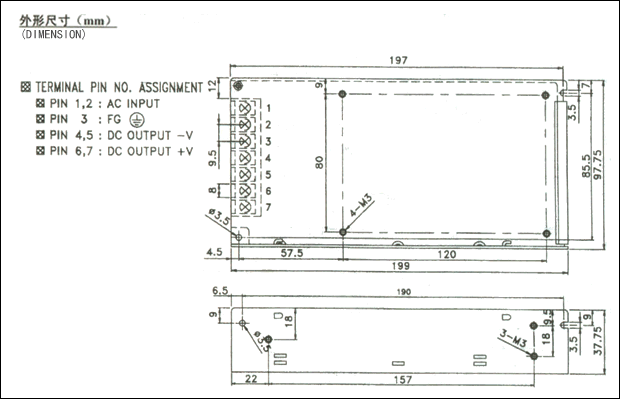 注:1、以上參數(shù)測試條件為:230VAC輸入,額定負載,25℃ 70% RH.濕度。